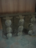 Antigua caramelera con nueve tarros de cristal ( uno roto ) bastidor de madera y tapas de estaño. 400.00€