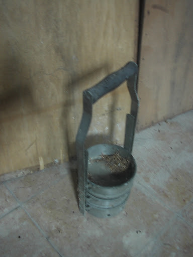 Asador de castañas en hierro. Para colgar en una chimenea.