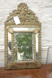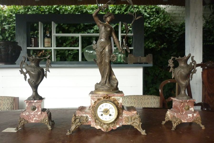 Reloj francés en mármol rojo y calamina. Ppios s. XX.