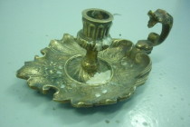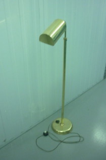 Lámpara de pié dorada. Es extensible desde 110 hasta 170 cms., con cazoleta orientable e interruptor de pisar. Funcionando perfectamente.