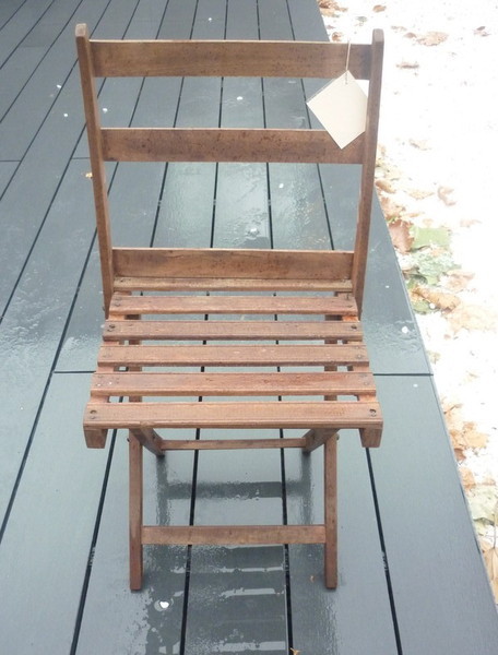 Antigua silla plegable, que queda totalmente plana lo que la hace muy cómoda para transportar. Muy usada a principios del s. XX por las niñeras en sus paseos por el parque. 50.00€